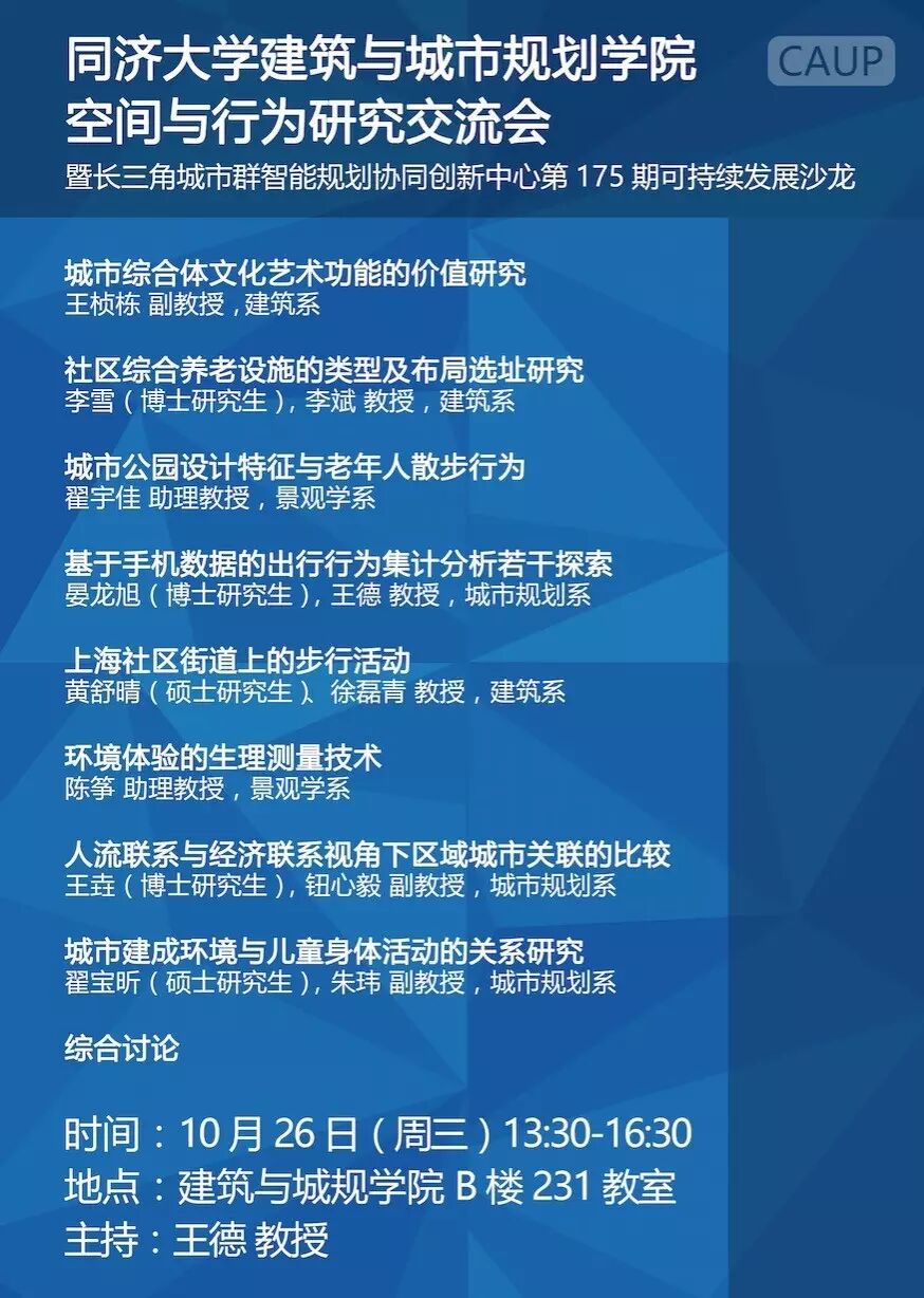 【通知公告】第175期可持续发展沙龙---空间与行为研究交流会