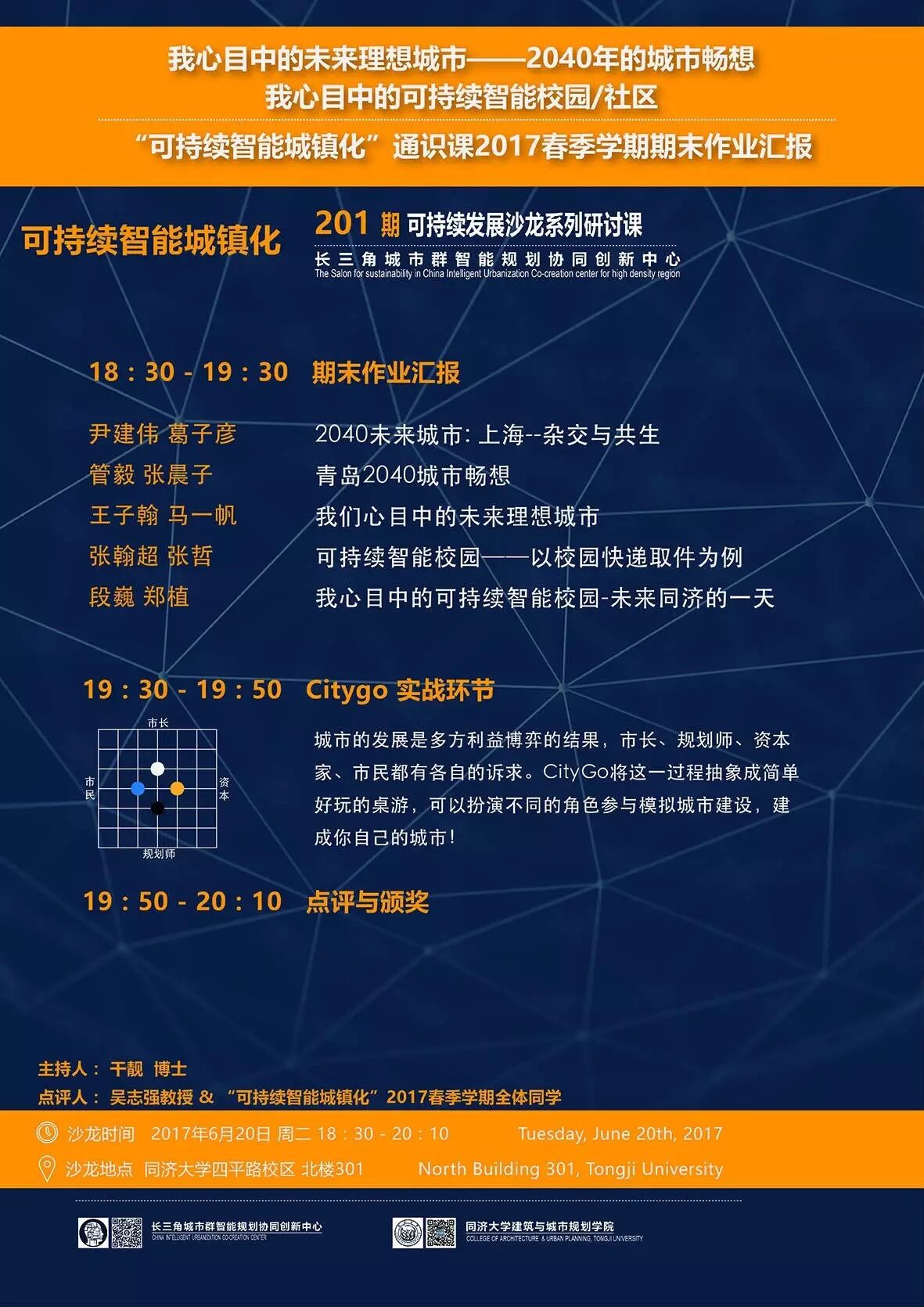 【通知公告】“可持续智能城镇化”2017年春第十五讲暨第201期 期末作业汇报