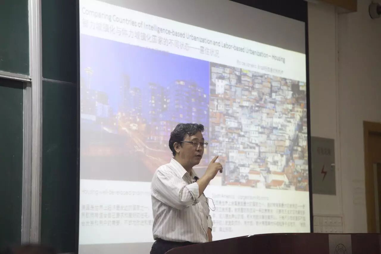 随后,吴校长从水环境、大气环境、能源使用、居住状况、经济状况、社会状况、国家体制等方面介绍智力城镇化与体力城镇化国家的不同状态。75%的城镇化率,不努力也可以达到。但是,在此高城镇化率下,国家有着两种不同的生产生活生态水平,同时,城镇化的挑战是巨大的——能源、产业、文化……我们将面临巨大的挑战。