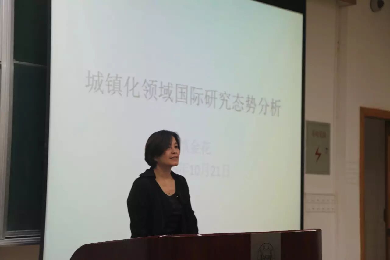 2015年10月21日 下午6:30“可持续智能城镇化”2015年秋第六讲暨第129期可持续发展沙龙系列研讨课在同济大学四平路校区教学北楼301阶梯教室顺利开讲。沙龙主讲人同济大学图书馆馆长慎金花教授带来了“城镇化领域国际研究态势分析”为主题的精彩报告, 分别从国际论文研究发展态势分析,国际会议分析,国际基金分析三个方面对城镇化国际研究态势进行总体介绍。