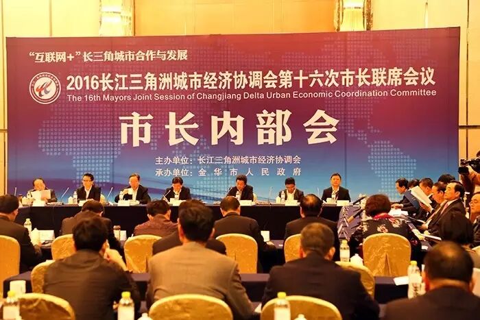 长江三角洲城市经济协调会(以下简称“长三角协调会”)第十六次市长联席会议于2016年3月24日至25日在浙江省金华市召开。会议以“‘互联网+’长三角城市合作与发展”为主题,上海、无锡、宁波、舟山、苏州、扬州、杭州、绍兴、南京、南通、泰州、常州、湖州、嘉兴、镇江、台州、合肥、盐城、马鞍山、金华、淮安、衢州、芜湖、连云港、徐州、滁州、淮南、丽水、宿迁、温州等30个成员城市市长出席了会议。国家发改委等有关领导,浙江省政府有关领导,上海、江苏、浙江、安徽三省一市发改委和经合(协作)部门领导,长三角协调会成员城市发改委、经合(协作)部门领导,泛珠三角、环渤海区域合作组织代表,长三角协调会专家咨询委员会、专业委员会和专课题部分代表应邀参加会议。